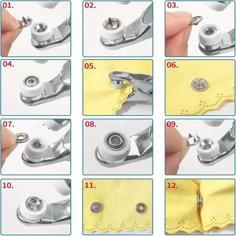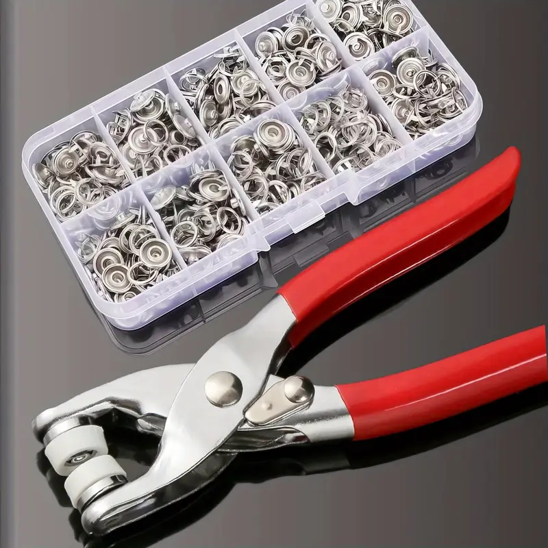 Heavy Duty Metal Snap Button Kit with Hand Press Plier – No-Sew Press Studs for Clothing, Hats, Bags, DIY Crafts – Includes Storage Case, Prong Rings & Rivet Buckle Claw