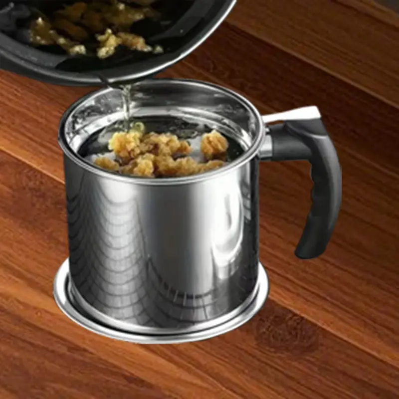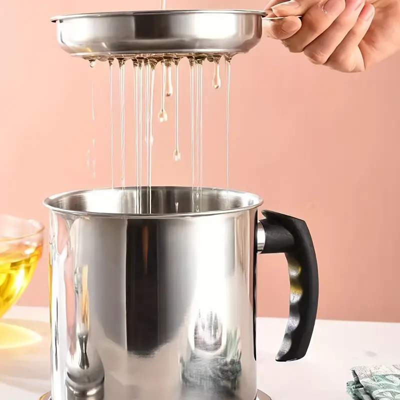 1pc Kitchen Stainless Steel Oil Jug With Strainer