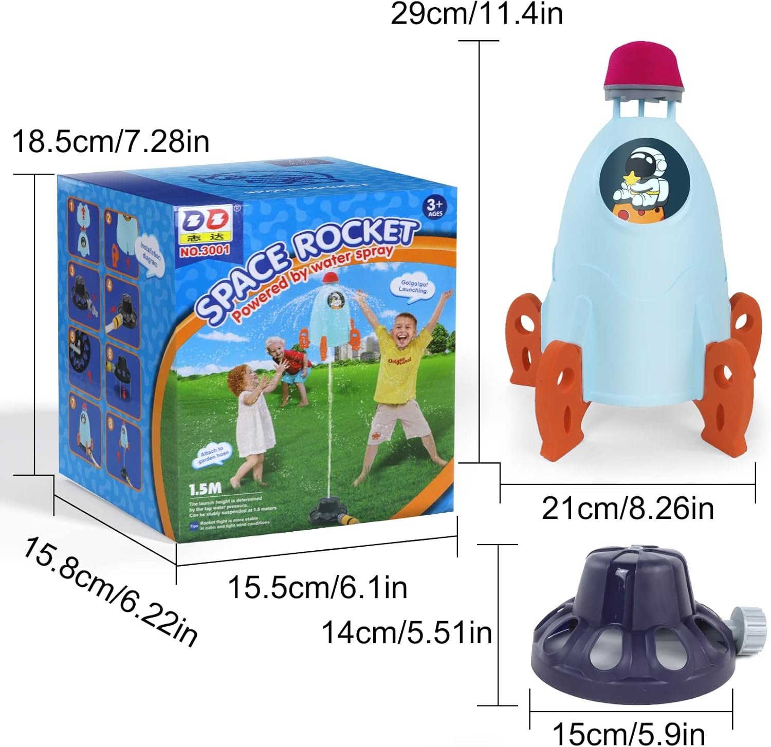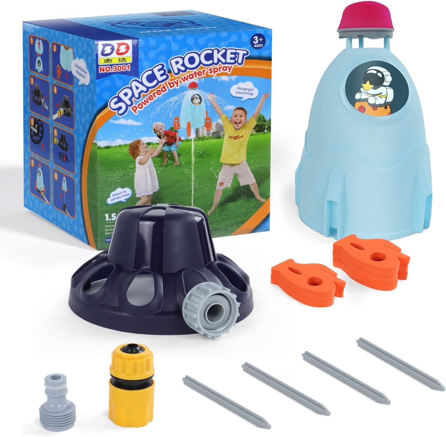 Outdoor Water Sprinkler for Kids & Toddlers – Rocket Design Water Powered Liftoff 9-16ft & Spin, Outside Kids Sprinkler for Yard Pool Garden – Summer Water Toys Birthday Gift